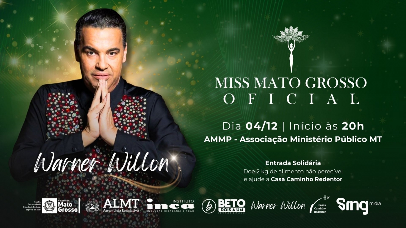 Sob direção do renomado missólogo e colunista social Warner Willon, referência há quase quatro décadas no universo dos concursos, o Miss Mato Grosso Oficial fortalece a ideia de que a coroa e a faixa representam muito mais que estética: simbolizam propósito, voz ativa e protagonismo feminino.